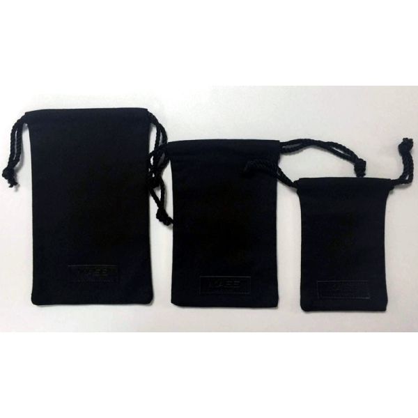 Small black 100% organic canvas cotton fabric drawstring pouch bags with custom PU label Drawstring Gift Bag